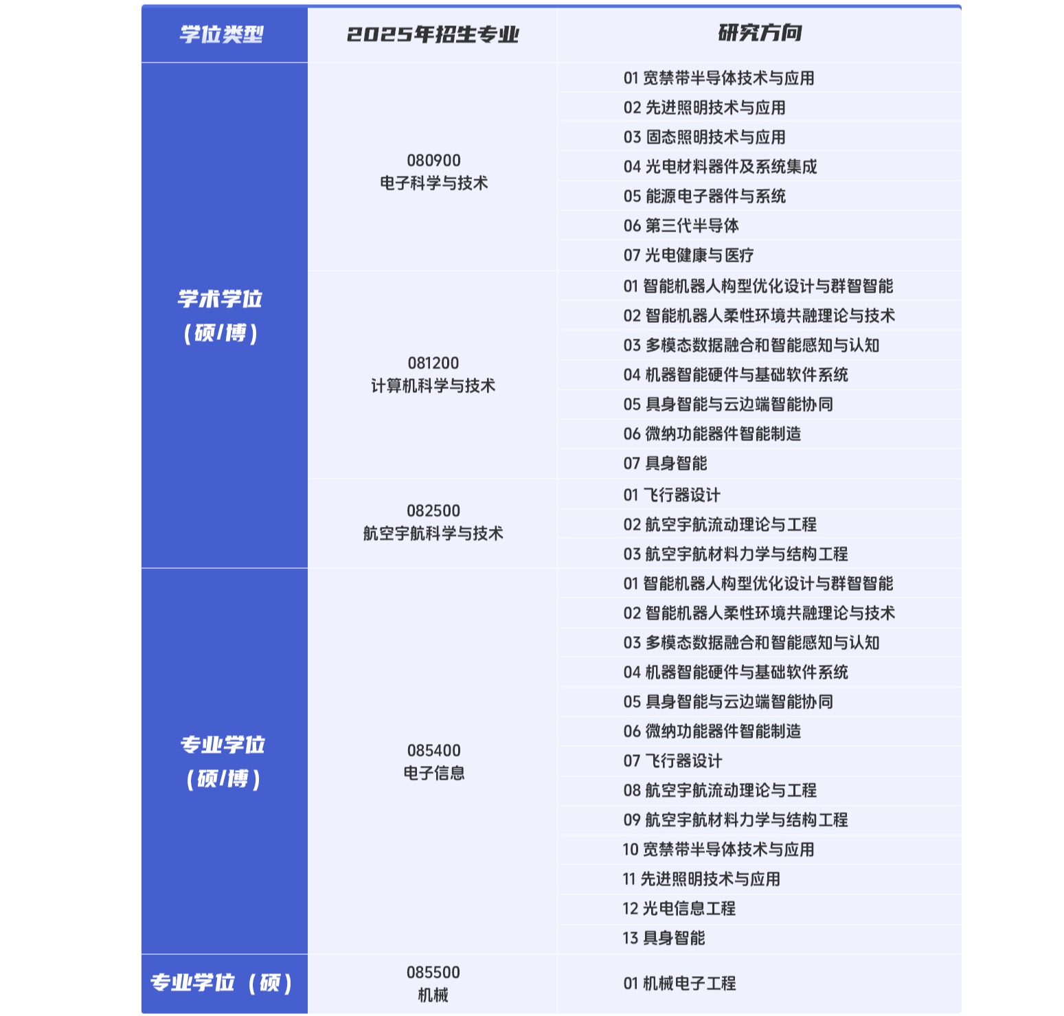 智能机器人与先进制造创新学院研究生学术学位和专业学位