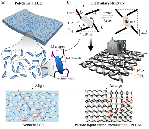 图1. 液晶弹性体网络结构与拟液晶超材料多畴序构可视化编程设计与构筑