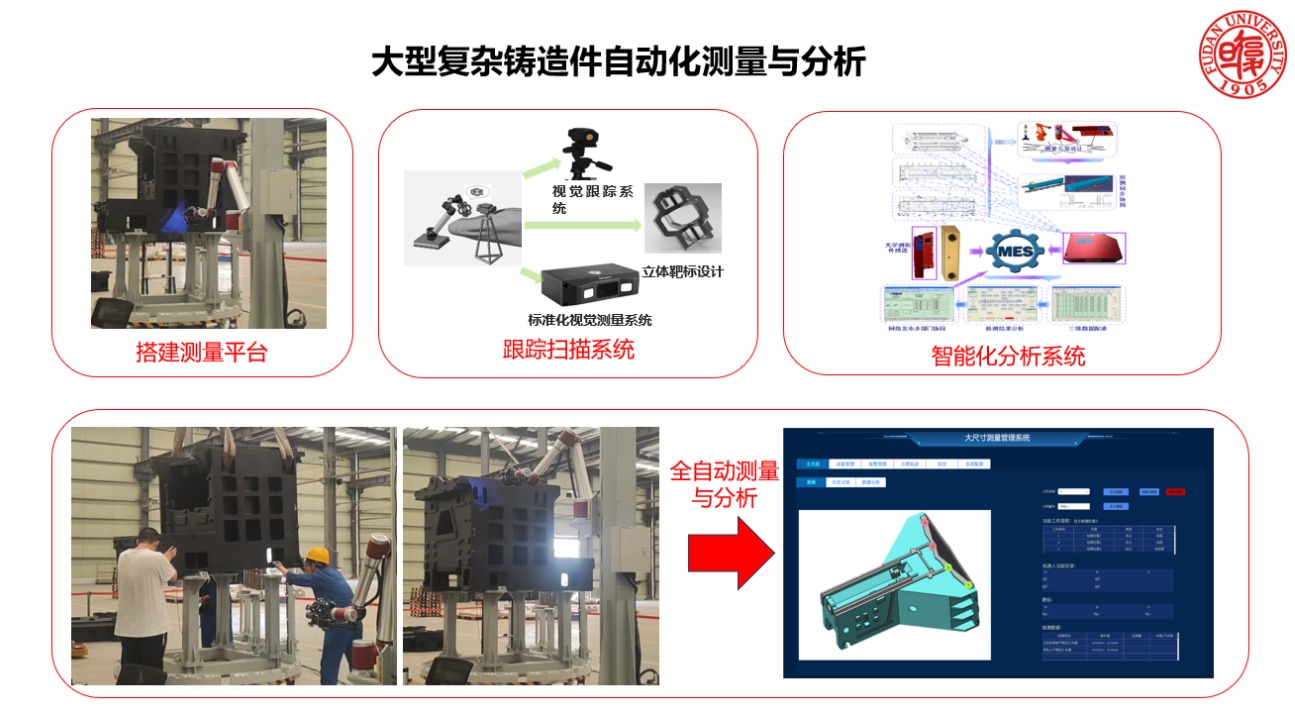 项目1提出了高精度手眼快速标定算法、自适应尺寸测量方式、深度学习点云拼接与优化算法等多项技术,成功突破行业研发瓶颈与企业难题,解决了铸造业传统测量方法效率低、精度不稳定、难以满足高精度、全覆盖测量需求的现状和基本难题。