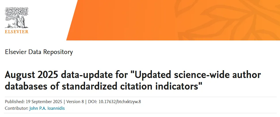 “2025年度全球前2%顶尖科学家榜单”是基于Scopus数据库的引用数据系统分析,使用总引用量(区分自引和他引,提供自引数据)、Hirsch H-index、共同作者修正的Schreiber Hm-index、单独作者、单独或者第一作者等6个关键因素评分,从全球800余万名科学家中遴选出世界排名前2%的科学家,涵盖了22个学科领域和174个子领域,为科学家长期科研表现提供了一个衡量指标,能够更客观、更真实地反映科学家的影响力。其中终身科学影响力榜单(Career)统计科学家职业生涯期间的综合表现,而年度科学影响力榜单(Singleyr)则更聚焦上一年度的学术影响力。