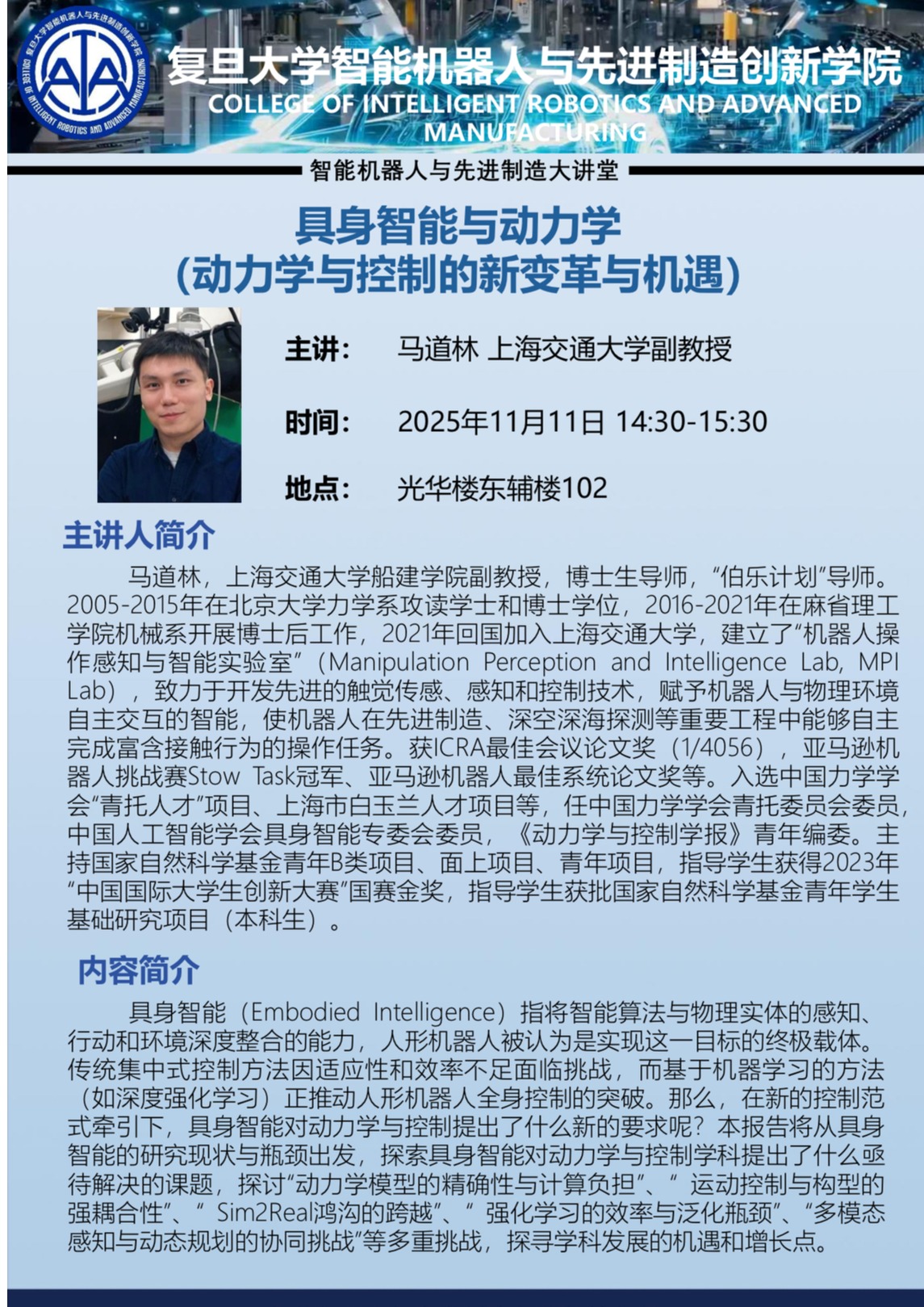 时间:2025-11-03 来源:复旦大学智能机器人与先进制造创新学院