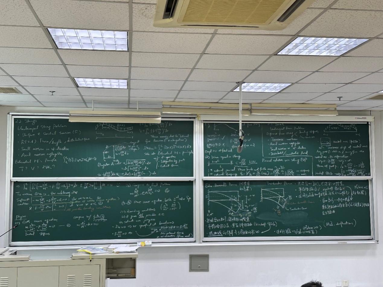课程高度注重与计算机实践能力的融合,作业设计贴近工程实际,鼓励学生使用编程工具完成多自由度系统振动分析、连续体振动响应等大规模数值计算问题,切实提升其运用现代计算手段解决复杂工程实际问题的能力。课程实施全英语教学模式,在专业语境下系统锻炼学生独立开展科研工作和解决实际问题的能力,同时显著提升专业英语文献阅读、学术写作与水平,为后续深入科研学习、进行国际交流奠定坚实基础。课堂教学坚持以手写板书为主,注重公式推导的逻辑过程与物理内涵的深入阐释,并辅以互动提问和随堂讨论,使抽象公式变得生动具象,促进学生充分参与和深度思考。
