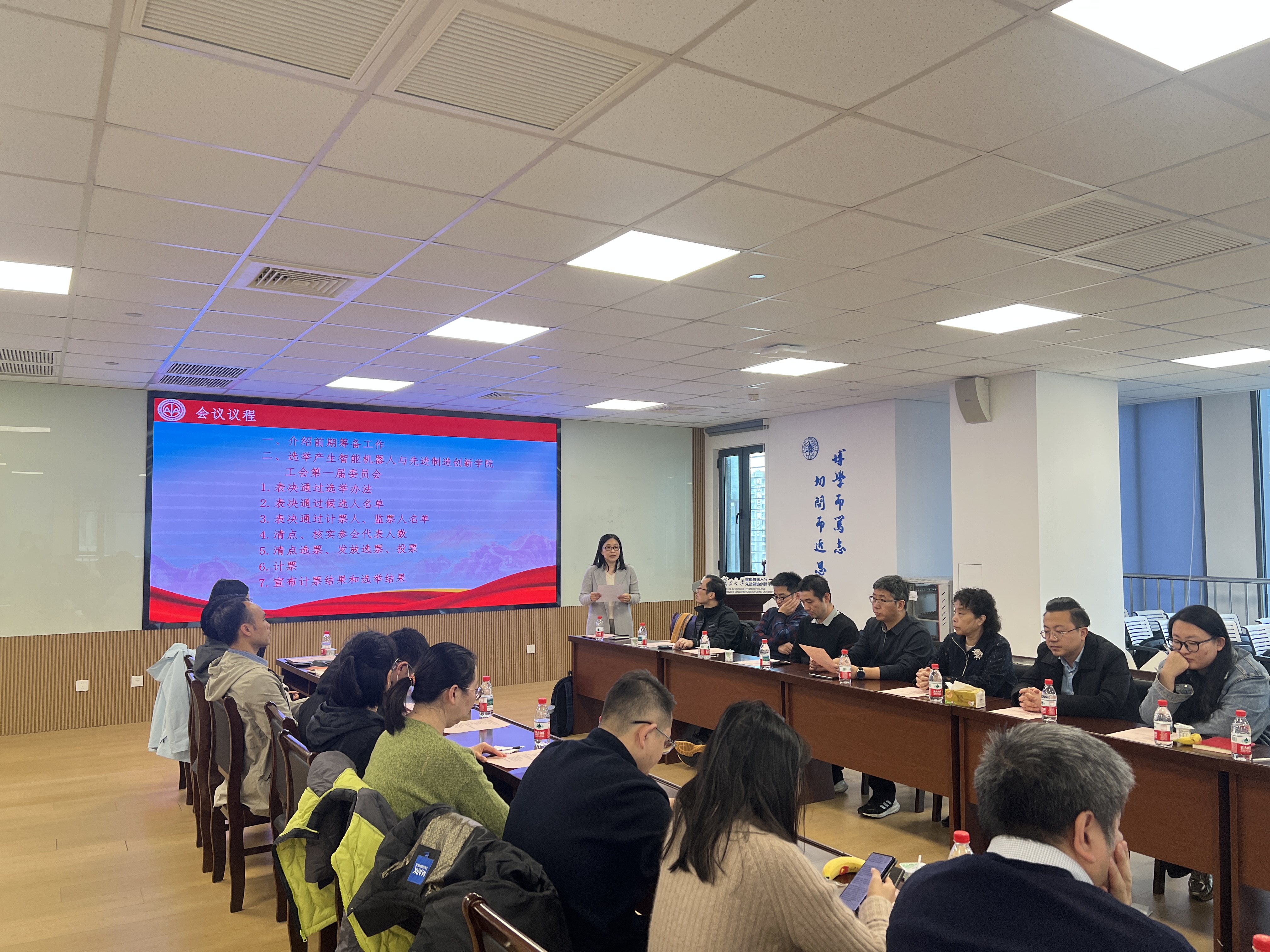 筹备组向全体代表报告前期准备工作开展情况,展示中国教育工会复旦大学委员会同意学院召开会议、选举产生第一届工会委员会的批复。工会代表审议并通过选举办法、候选人名单及监票人、计票人名单。经无记名差额投票,选举产生马宏平、李福生、刘琰玲(女)、张维锦(女)、陈相仲、常昊宇(女)、董志岩担任学院工会第一届委员会。7位委员来自学院下属各单位及学院行政工会小组,涵盖教学、科研、管理等多个岗位,具有较广泛的代表性。
