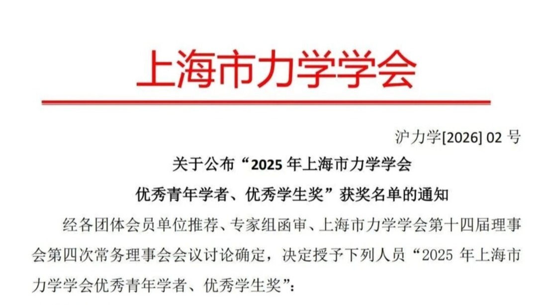近日,2025年“上海市力学学会优秀青年学者奖、优秀学生奖”“第三届上海市力学学会优秀博士学位论文奖”评选结果揭晓。学院师生凭借扎实的学术积累和优秀的科研成果脱颖而出,被授予多项荣誉。