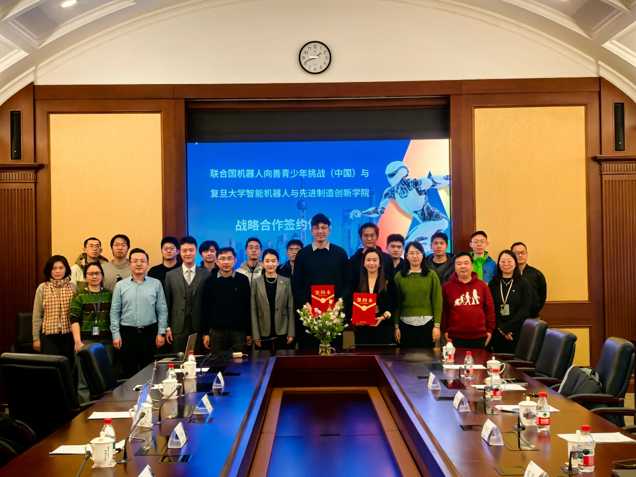 近日,学院与机器人向善青少年挑战中国区签约仪式在邯郸校区举行。根据备忘录,学院将作为2025-2026年度“联合国机器人向善青少年挑战”中国区联合承办单位,共同推动人工智能与机器人技术在青少年中的普及、教育与伦理向善发展。