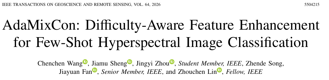 23.范佳媛科研团队IEEE TGRS,AdaMixCon: 面向小样本高光谱图像分类的难度感知特征增强